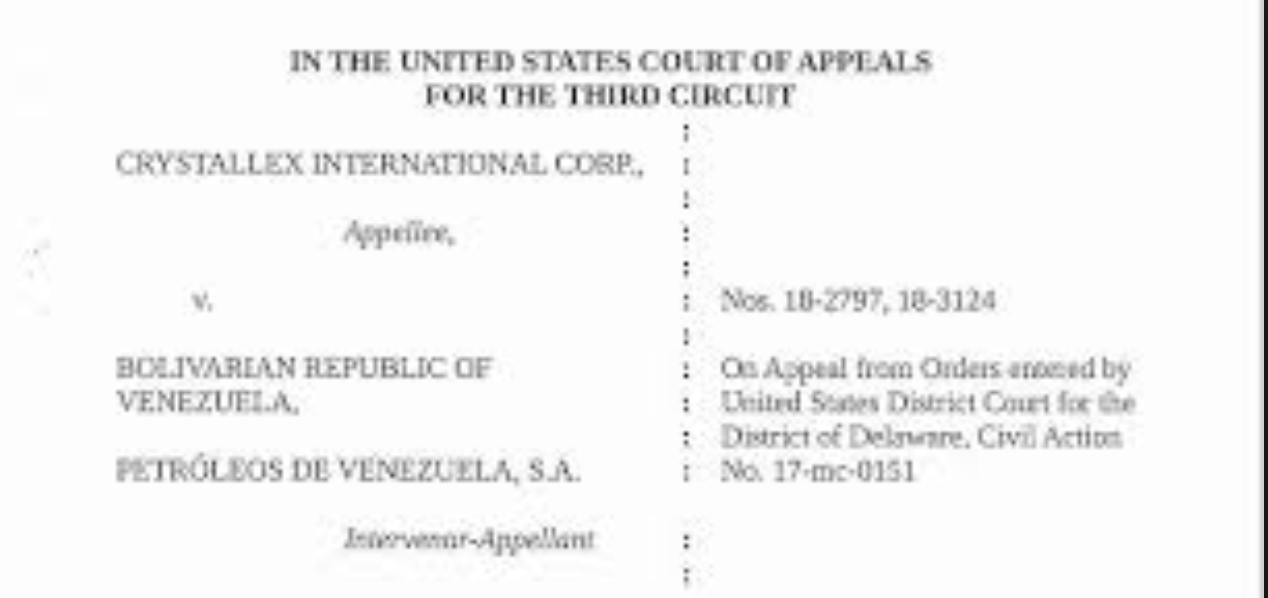 Una Corte federal de apelaciones de los Estados Unidos rechazó un recurso apelación de Petróleos de Venezuela para anular una orden emitida por un tribunal de Delaware que permite que la transnacional minera canadiense Crystallex Internacional Corp. se apoderarse de acciones en la unidad de refinación de PDVSA en los Estados Unidos, Citgo Petroleum Corp.